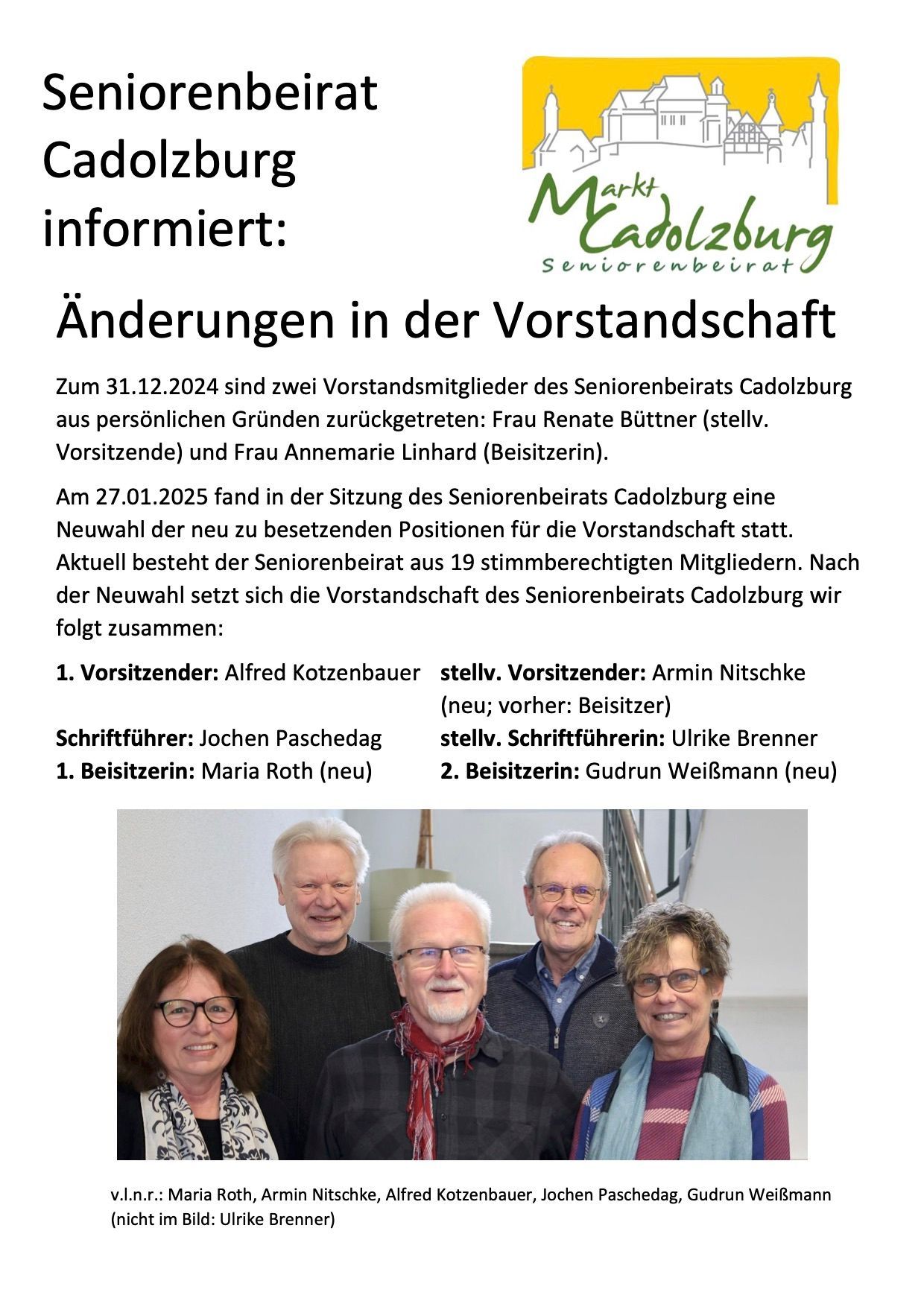 Nach der Seniorenbeiratswahl wurde die bisherige Vorstandschaft verabschiedet. Sowohl Frau Brenner als auch Herr Nitschke haben aus privaten Gründen nicht mehr für den Vorsitz kandidiert.